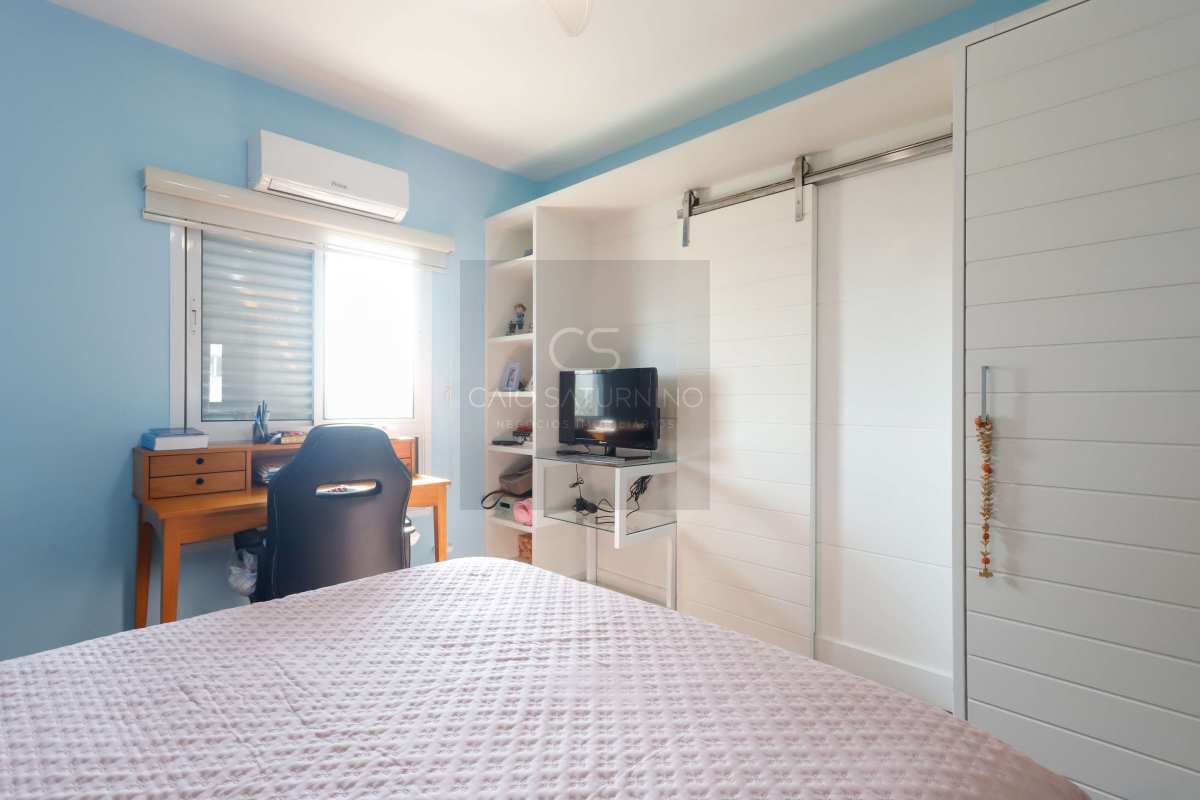 Com 107 m², o imóvel oferece 3 dormitórios, sendo 1 suíte, além de 3 banheiros (incluindo o de serviço). A sala possui ótima integração e janelas que garantem luminosidade natural ao longo do dia. A cozinha é espaçosa, funcional e com boa circulação, assim como a área de serviço independente.